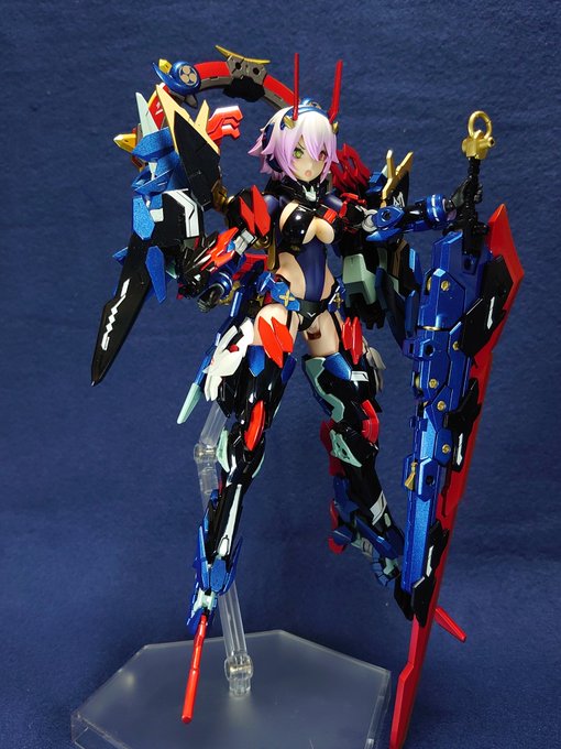#第三回美少女プラモコンテスト を応援中🥳 #メガミデバイス スサノヲ完成間近❗ 塗装を急いでいたので、クリアランスが酷い💦ここまで組み上げるのにも苦労の連続😓削って削って削って… でももうすぐ完成する✨もう少しだ😆