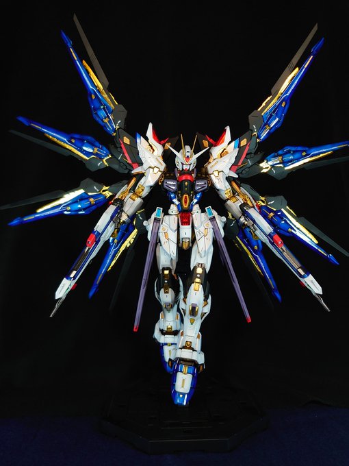 #ガンプラ #ガンプラ好きと繋がりたい #ガンプラの画像を貼るとRTされると聞いて MGEXストフリも完成😉✨ 近所のコンテストに出そうと思っていたら残念ながらサイズオーバーで出せず😵💫 きれいに塗装できたので我が家の展示棚のレギュラー入り間違いなし👍✨