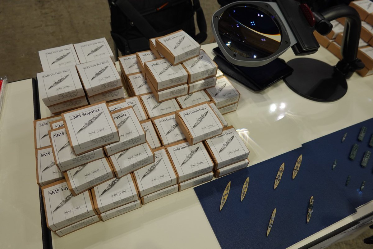 25 53 ワンフェス2020冬お品書き②ユトランド沖海戦シリーズ 《1/3000 ライオン》:¥1000 《1/3000 クイーン・メリー》:¥1000 《1/3000 ザイドリッツ》:¥1000 《1/3000 フォン・デア・タン》:¥1000 主砲と艦載艇を別パーツにしています。 #wf2020w #集める軍艦 20/01/21 20:58
