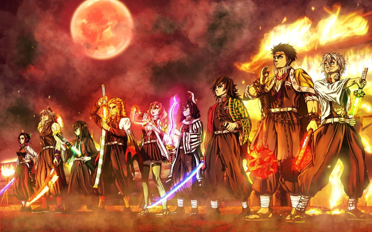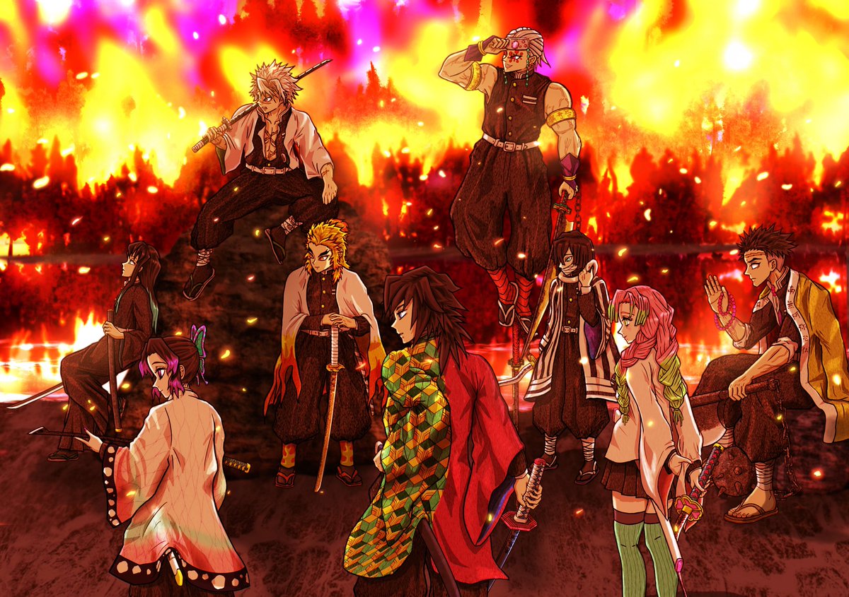 柱の皆さん 日輪刀のエフェクト効かせすぎたかな。。 早く遊郭?遊廓?編、始まらないかなー #鬼滅の刃 #柱 #イラスト #鬼滅の刃イラスト