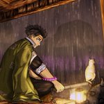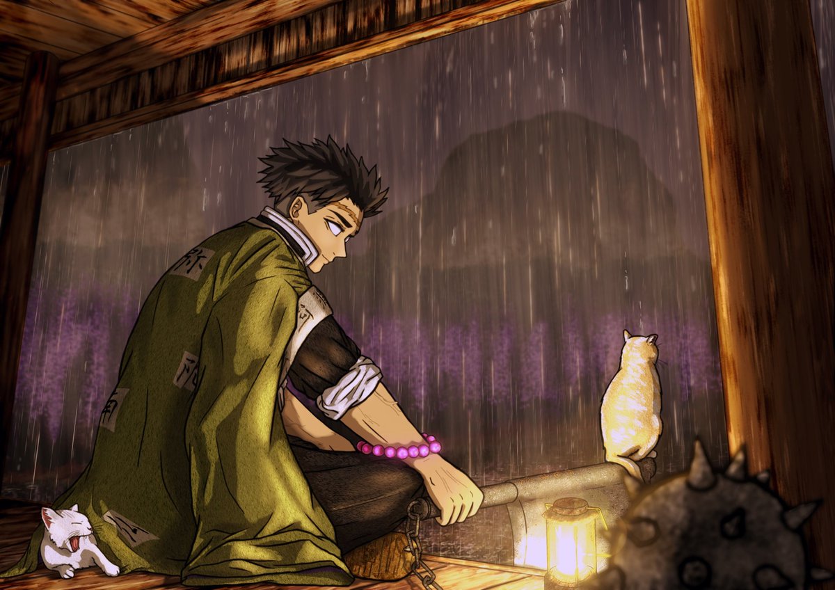 悲鳴嶼行冥さん(雨宿り) 悲鳴嶼さんはなんとなく動物に好かれそうなイメージ #イラスト #illustration #鬼滅の刃 #悲鳴嶼行冥