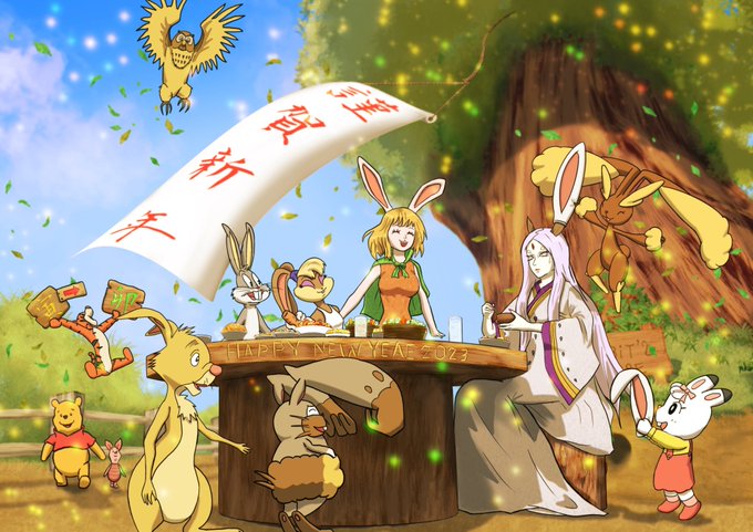 4 12 あけましておめでとうございます☀ 卯年なのでウサギキャラを プーさんに頼りきりです。。 #イラスト #年賀状 #卯年イラスト 23/01/01 11:41