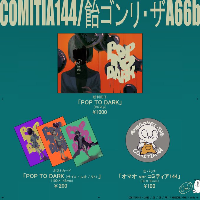 12 18 5/5 #COMITIA144 お品書きです🍊🏷 仄暗いイラスト本と可愛いポストカードとよく分からん缶バッジが出ます‼️ よろしくお願いします 23/04/28 19:01