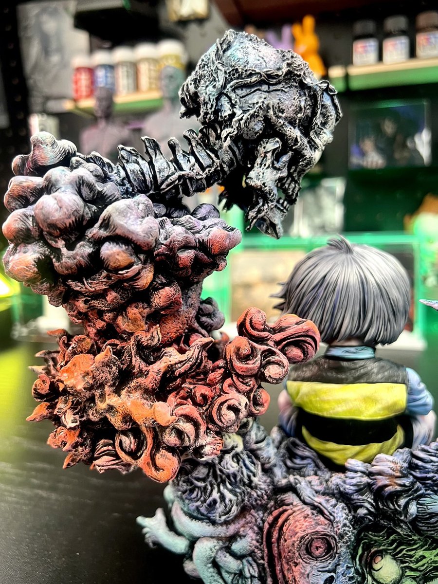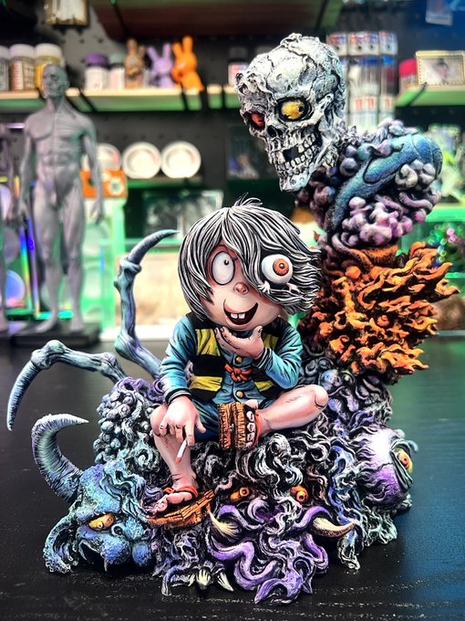 情報が段々出始めて来たので… 鬼太郎EXPOに出展するフィギュアは… なんと岩倉圭二@clash1977k さんとの共作!!造形は岩倉さんで、ペイントは私で、この鬼太郎は一点物🫠 鬼太郎だけでもかっこよきなんだけど、色んな妖怪も表現されてるから1体のフィギュアなのに満足感がやばい笑… twitter.com/i/web/status/1…