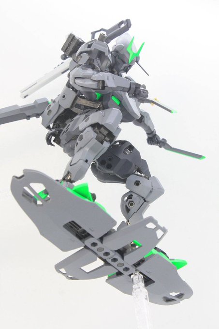 #ALCウェアビルド ガンダムAGE-2 ジンライ トリガー式の居合切り武器を作りたいがためだけにこのウェアを作りました!両足は30MMの脚を組み合わせて製作し、甲冑の下半身のようなシルエットになるようにしています。膝の仕込みガトリングはただの性癖です笑