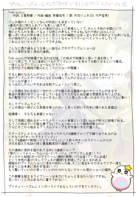 『プリティーリズム・レインボーライブ』10選の結果はこんな感じになりました。 この期間沢山RT&いいねして頂いてありがとうございました。 この機会に作品を初めて知った方や、当時を懐かしく思い出したりして楽しんもらえた方がいたなら幸いです。 #プリティーリズム・レインボーライブ #RL10周年