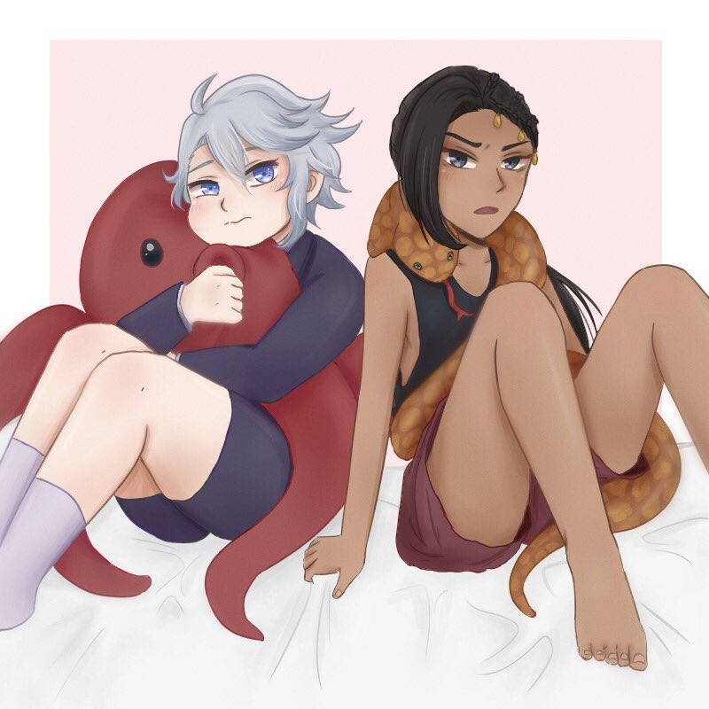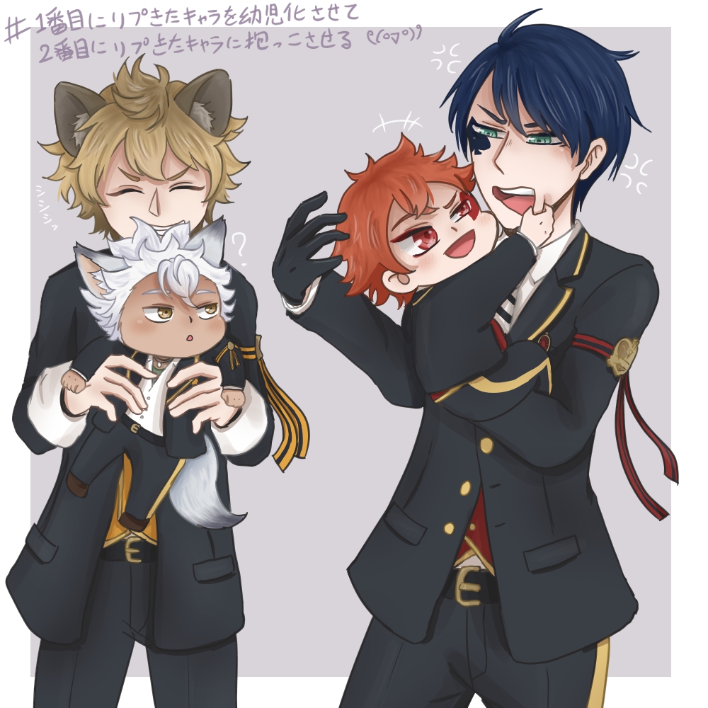 twiにもfbにもご反応頂き、ありがとうございます!😭✨ 一年生3人組とラギーでした!(´︶`艸)♡ #1番目にリプきたキャラを幼児化させて2番目にリプきたキャラに抱っこさせる #ツイステファンアート