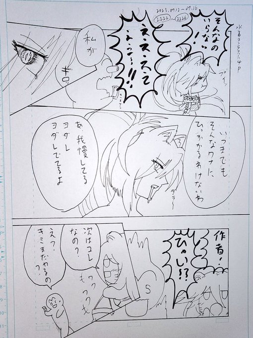 7 26 水着コンテスト。 これはネタが尽きません。オリキャラでするコメディは面白いですね。 キャラがへにょへにょになる時が好きで描きたくなるんです。身体能力が高い猫族もマタタビには勝てませんからね。 水着というかドレス衣装ですね。似合ってるからいいか (^_^)v #真害人 #イラスト 23/07/16 15:01