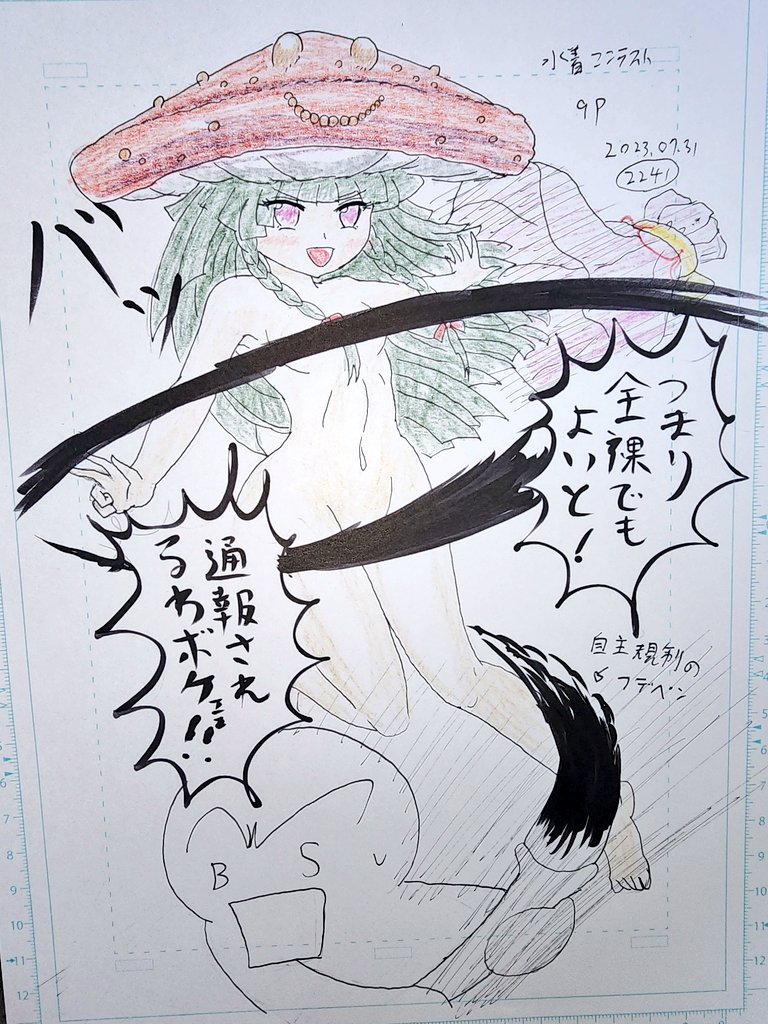 12 39 水着コンテスト。 ずっと忘れてた茸の人。 昔の人は水に入るときは裸だったんでしょうね。昔の人間は強いですね。 日本のキャラにある見た目が幼女のお婆ちゃんは、ロリなのか熟女なのかどっちなんでしょうか? #真害人 #イラスト 23/07/23 12:42