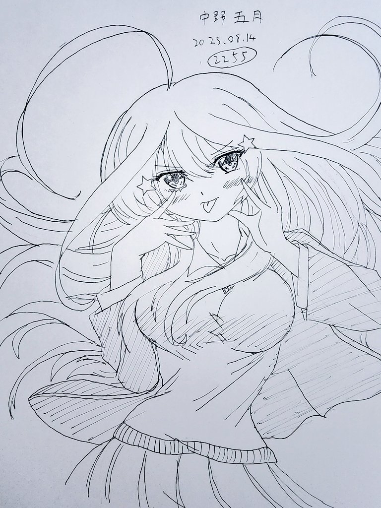 8 37 二次創作。構図模写。 五等分の花嫁より、中野 五月。 友達が推しだと言うので一度描いてみようかと。見事に自分画風になりました。これは名前が書いていないと誰か解りませんね (^_^;) 似て無いですが、一枚のイラストとしては好みな仕上がりになりました。…前髪、参考にしよ(¬∀¬) #イラスト 23/08/06 10:29