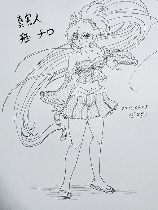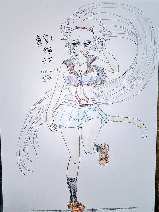 6 19 創作漫画、オリキャラカキカキ。 猫の人、チロ。制服のようなナニカ。 足回りの立体な表現を頑張りたいので、色々と試し中です。何度も描いているのですが、上手くいくことが少ないです。 (^_^;) #真害人 #イラスト 23/08/20 04:43