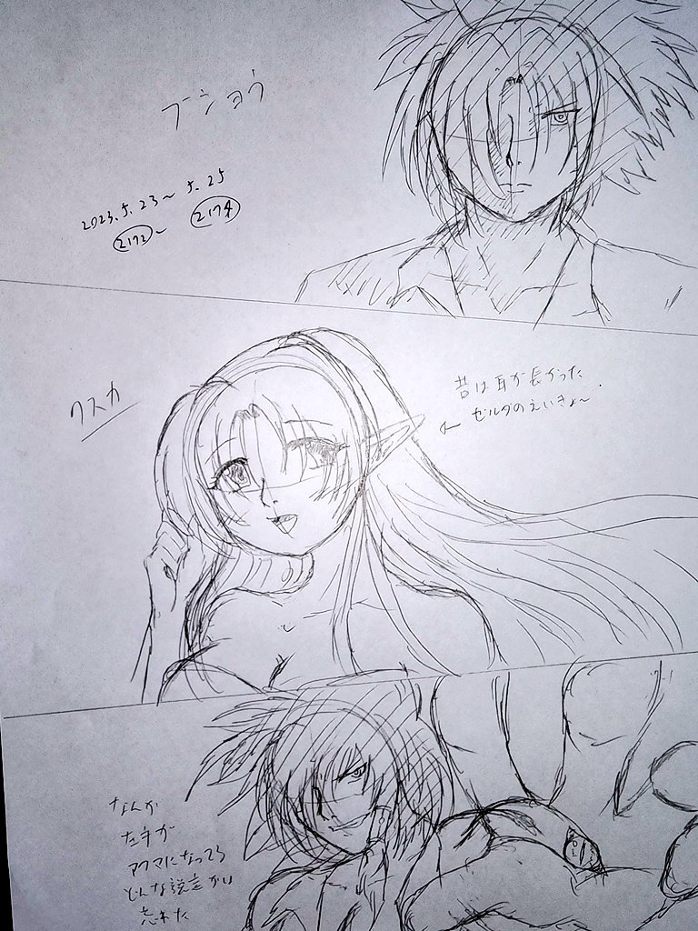 あ、先週投稿忘れてた… 自分がオリキャラばっかり描くのは、二次創作する実力が無く、原作に失礼ないような作品を表現出来ない為で気後れしてる状態です。 今なら行ける? ゼルダにハマっているのでゼルダ関係のキャラをカキカキ。 うん、主観で中の下ぐらいの仕上がりですかね…。 #イラスト