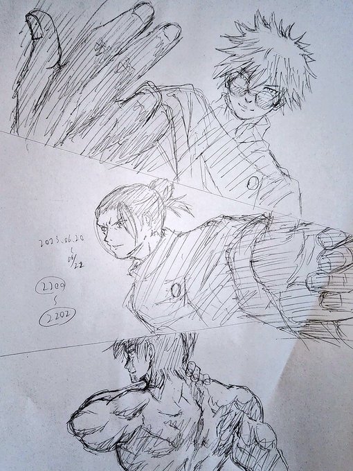 2 7 呪術廻戦 描いてみました。 ほぼ模写です。 時間が少ないため下書きで (^_^;) 23/06/18 15:16