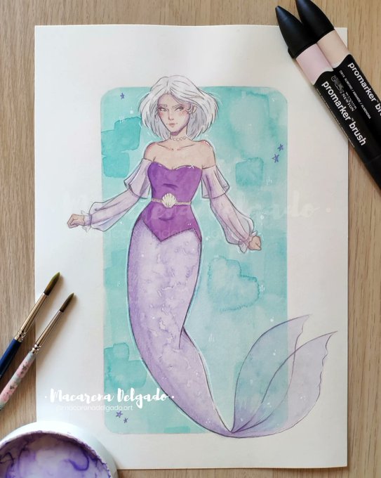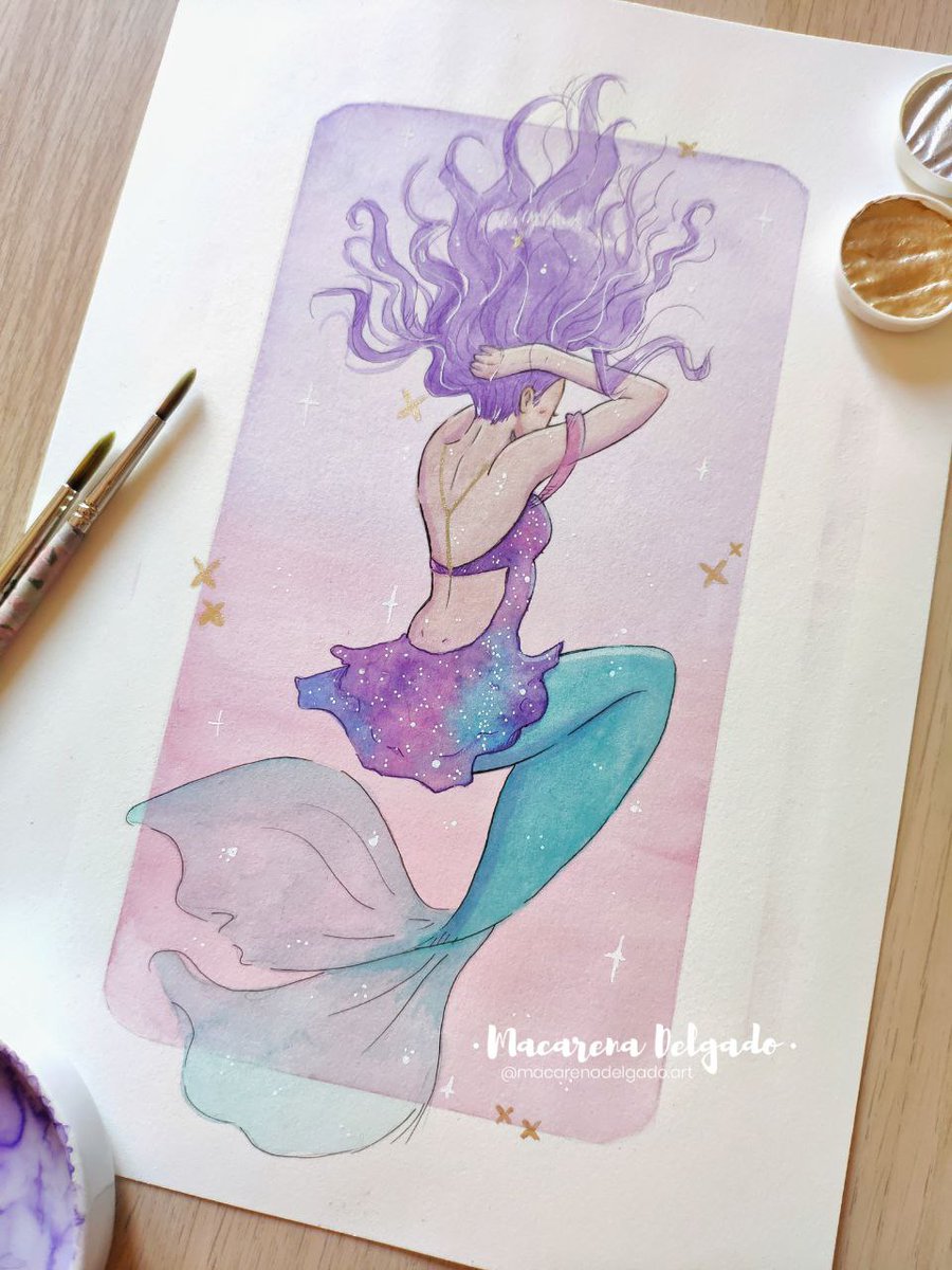 MERMAY 5: BUTTERFLIES. Estoy bastante contenta con el resultado de esta ilustración, a pesar de un par de fallos que los miro y me comen por dentro, esto de probar posturas diferentes y cositas con la acuarela está siendo muy chachi. #mermay #mermay2022
