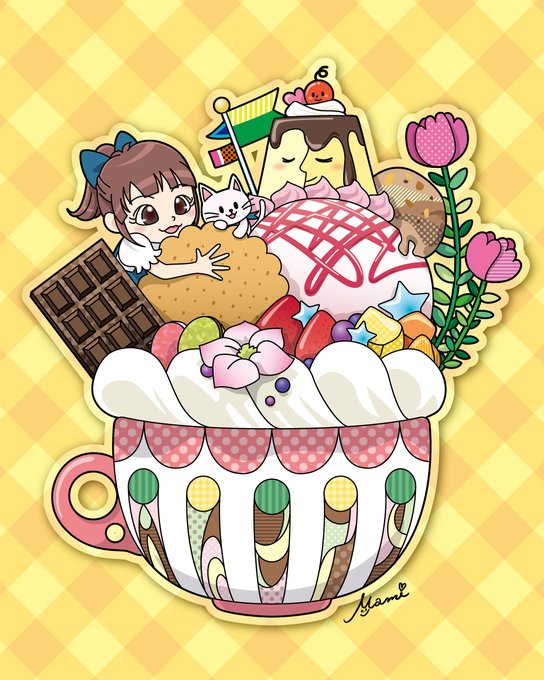 「一杯の幸せ」 新しい名刺用に描いたイラストです🎨✨ 「好き」をてんこ盛り…ですね❣️笑 9月から、旧デザインも使用しますが… 徐々にこのデザインに移行・使用しますよ~😊🎵 …てづばで配布用っていうのが、本音かも🤭🍀 #イラスト #絵の世界 #イラスト好きな人と繋がりたい