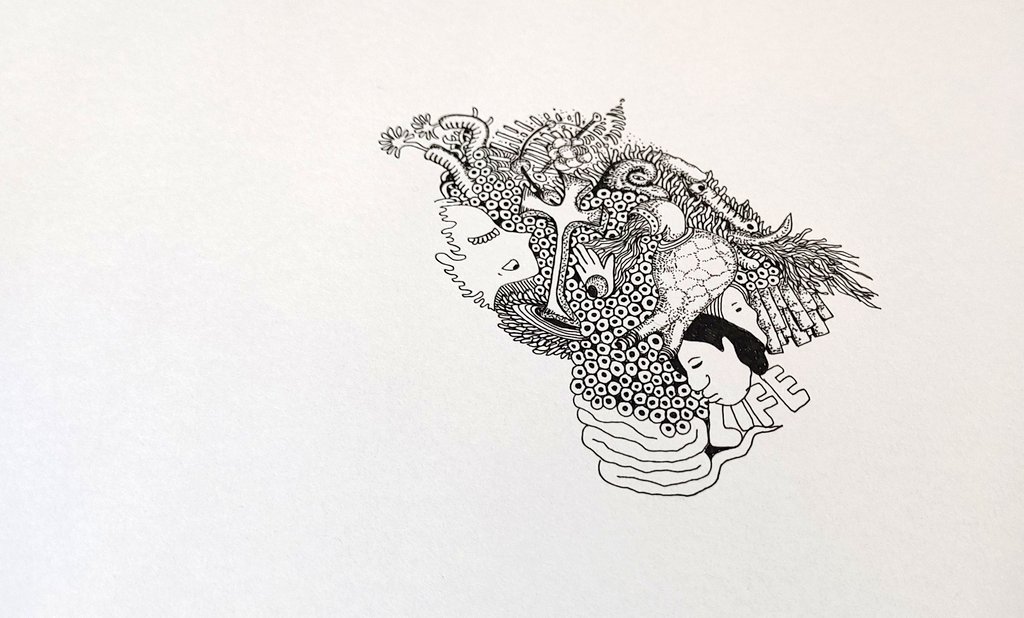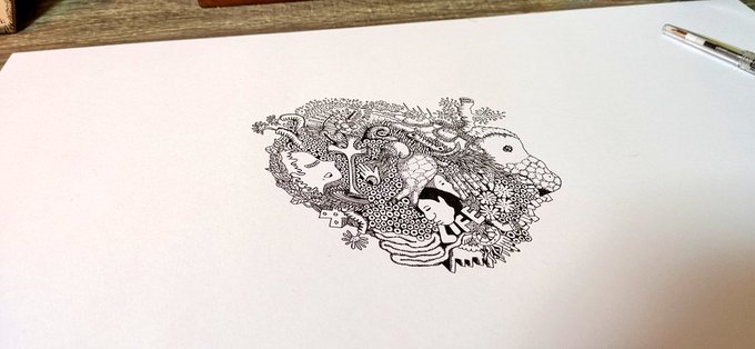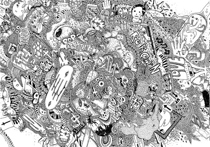 いろいろ思うところはありますが自分の絵に【閲覧注意】の注意書きしたくないので今まで通り流します。そりゃまんま集合体になりますよね、細胞の群集、増殖、個全全個、そんなイメージなのでこれからも描いてるので #ペン画 #illustration