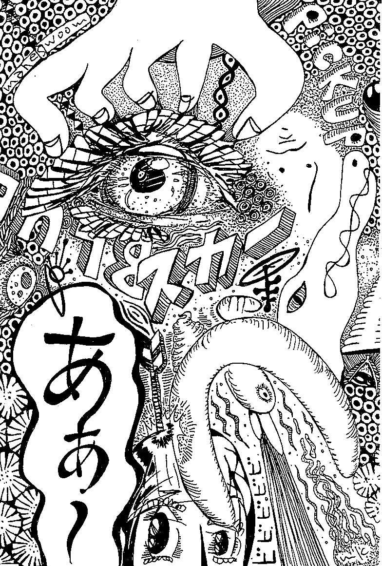 No.800 交換首在庫、隣の扉、大きな瞳の女の子、百足虫、ホワ~ん、白丸黒点群集、 #ペン画を流してペン画民を増やそう #illustrations #私の絵柄が性癖に刺さる人に届いてほしい
