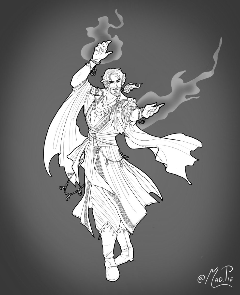 *Shaun Gilmore - The Fabolous Sorcerer* Why did I NEVER think of drawing Gilmore before?! I had so much fun w the clothes and details~! (Colored version will come soon!) #CriticalRoleFanart #CriticalRole #VoxMachina #ShaunGilmore