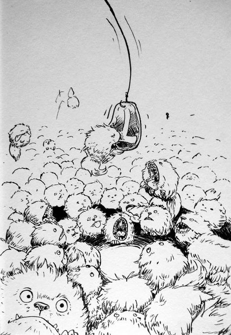 Inktober day 3: Bait🍖 Yes I couldn't think of anything good again. Then I remembered I love the Fizzgigs from Dark Crystal. And I want 100 of them so got some bait for them~ #inktober2019 #inktober #inktoberday3 #fizzgig #DarkCrystal #DarkCrystalAgeOfResistance