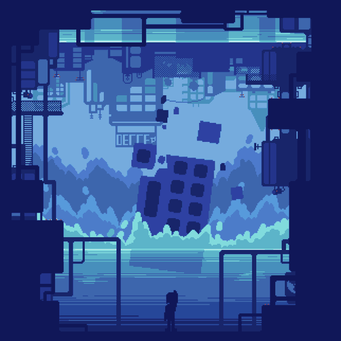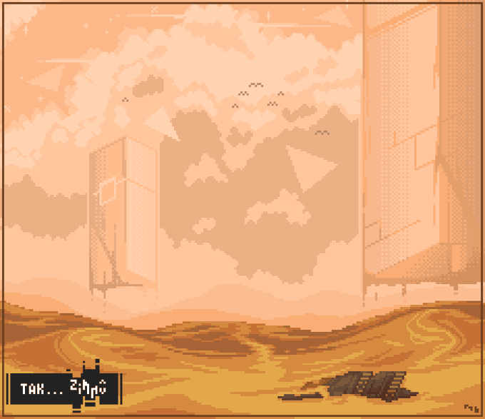 "So... Cold..." #ドット絵 Another landscape practice, this time I tried to make a sci-fi desert piece with some ominous monoliths in the background because why not! #pixelart #landscape