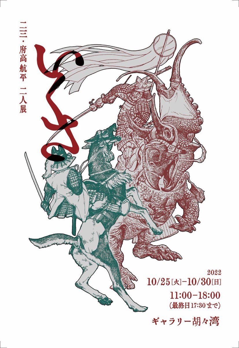 展示をします!!⚔️🐺🦖⚔️ 二三・府高航平2人展 「いくさ」 10/25〜30 11:00〜18:00(最終日は17:00まで) 京都市東山区のギャラリー胡々湾さんにて お近くの方是非! twitter.com/madai_pichi2/s…