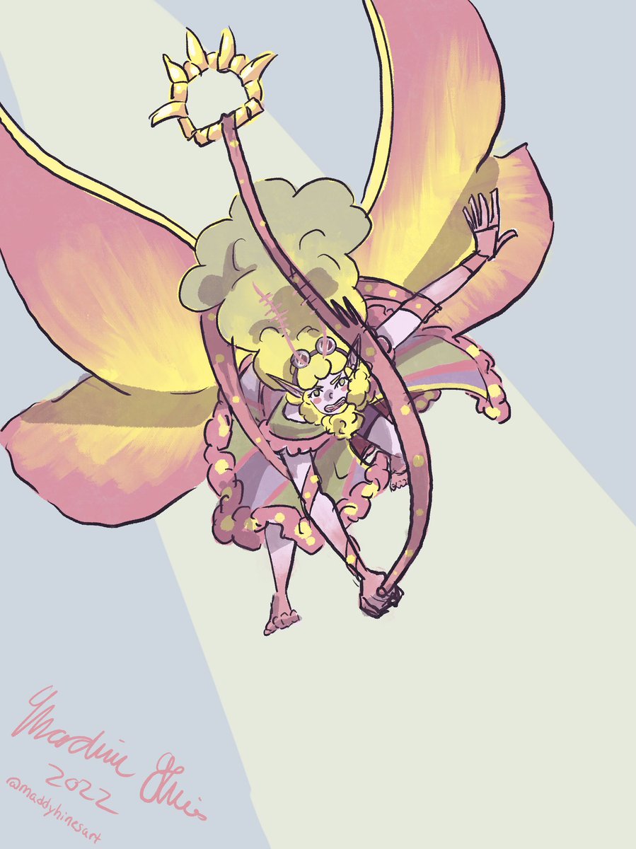 This is Fiahd my latest #dungeonsanddragons character! She is a #Fairy / blade singer/ #wizard. She is based on a rosy maple moth! Do you have a DnD character you love and would like drawn, I am open for #commission! Feel free to DM me! :) #moth #dndart #digitaldrawing