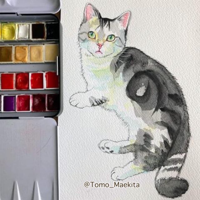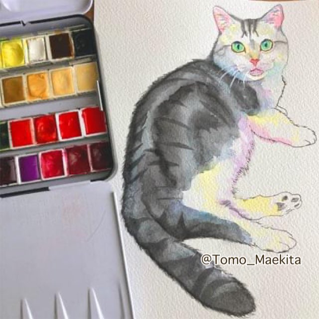 1 8 2022.5.5 名刺用のニャンコ、その2。 #アナログ絵 #水彩強化マラソン2022春 #水彩日和 #水彩 #🐈 #ネコ #猫 22/05/05 10:46