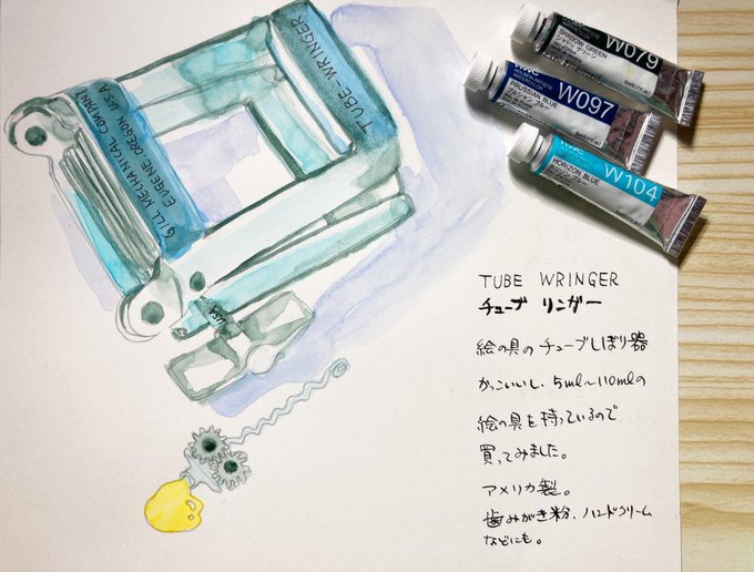 0 7 2022.5.11 チューブしぼり器。 アメリカ製。 絵具に限らずあらゆるチューブに… だけど、私は、絵具専用。 #アナログ絵 #水彩強化マラソン2022春 #水彩日和 #イラスト #アナログイラスト #水彩 #ホルベイン #holbein #チューブリンガー 22/05/11 22:16
