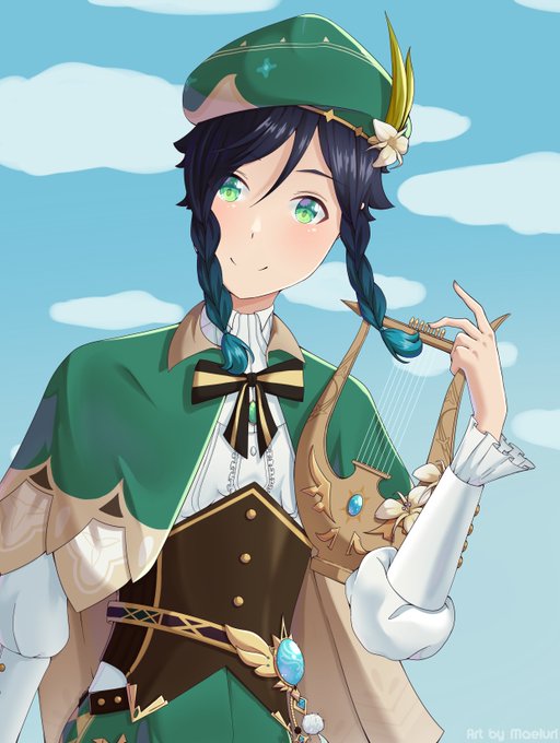 Fanart of Venti from Genshin Impact ^O^ I am learning to draw boys at the moment and I tried my best c: #genshinimpact #genshinimpactfanart #ventifanart