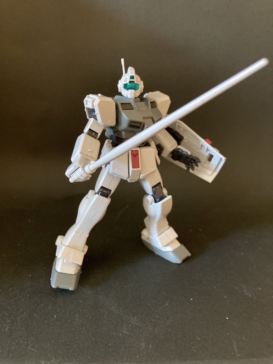 ジム(寒冷地仕様)のパチ組み完成! いかにもジムって感じのスタイルでカッコいい!構造もシンプルで組みやすい良いキットだと思いました! #ガンプラ #ガンプラの画像を貼るとRTされると聞いて #ジムの日