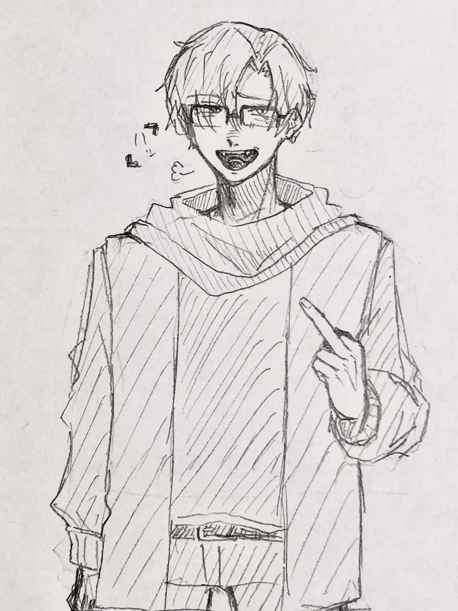 2 19 #wrwrdFA 落書きで描いたグルさんがいい感じだったので上げ、人差し指の異様な長さと小指の短さは気にしないで.... 22/07/12 22:43