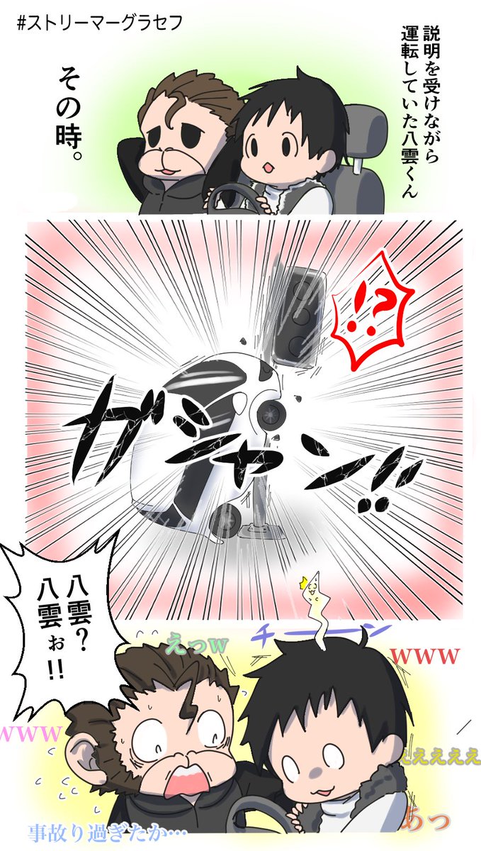 11/24のストグラで爆笑した場面。 信号に突っ込んで気絶した八雲くん。 運転はご安全に!🚗 #ストリーマーグラセフ #ストグラファンアート #斉藤まさのり #多山八雲 #ふぇころんあーと #すぱぁーと