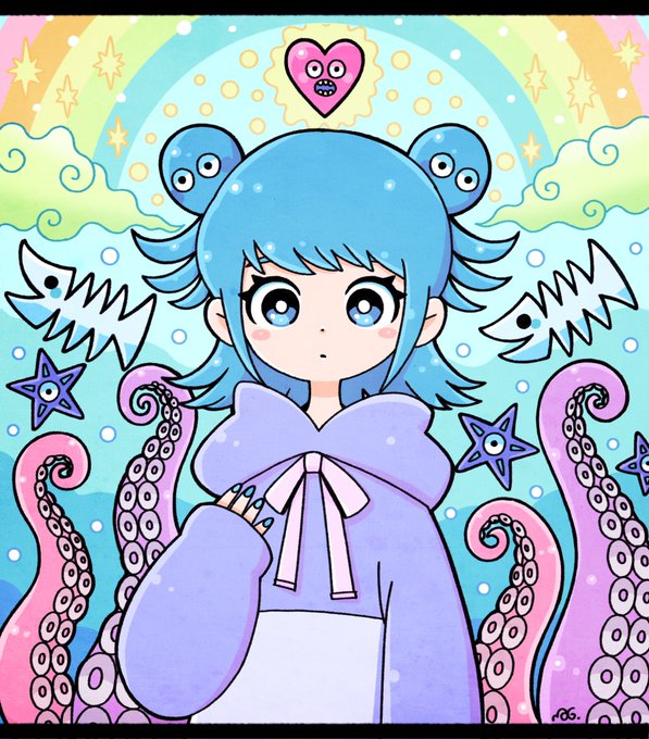 全人類見てください…かねこさんが誕生日に原画をプレゼントしてくれました😭可愛すぎて可愛すぎてずっと眺めちゃいます😭タコヘアーちゃん、奇跡のフィットキャンバスにも感動…!!🐙