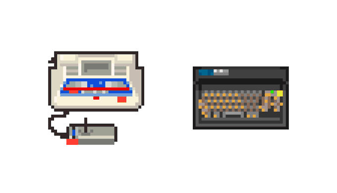 #セガハード40周年 #SEGAconsoles40th ファミコンと同年同日にセガから発売されたこの2機種。 持ってるSC3000は黒ですが、赤もあったんですね。 (すっごい昔に描いたやつです。) #ドット絵