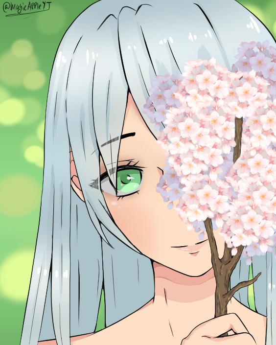 #inktober2020 My friend's oc Hikaru hiding her face behind some Sakura #inktoberday26 #inktober2020day26 #Inktober Speedpaint of this drawing should be out tomorrow on my youtube channel if nothing goes wrong 😁