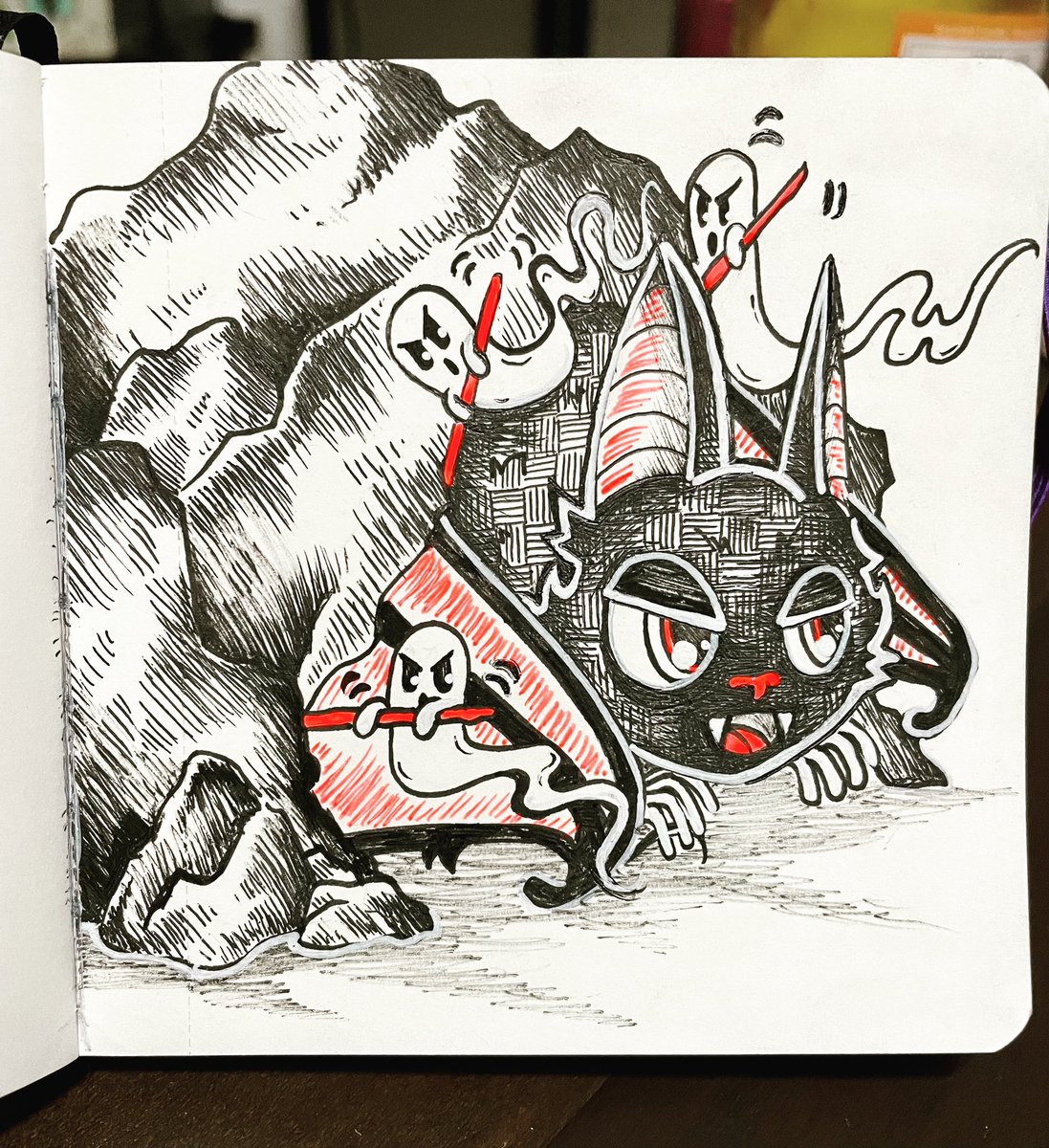 Inktober, Day 12: Stuck 🦇 Chunky bat boi who had too many treats… #inktober #inktober2021 #inktoberchallenge #inktoberday12 #Inktober