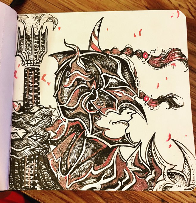 Inktober, Day 14: Helmet ✨ Gotta give it to my DRK Boi from the Shadowbringers promotional art. #inktober #inktober2021 #inktoberday14 #Inktober #FFXIVART #FFXIV