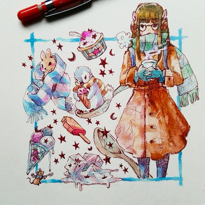 I'm doing Inktober very casually this year as I've been having a few problems with my drawing arm. Here is my take on Day 3: #freeze #Inktober2019 #watercolor #artistontwitter