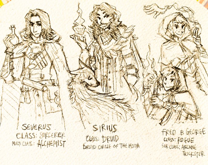 Sketch of Harry Potter characters sorted into D&D classes (not wizards! xD) #dnd5e #dndart #harrypotter #severussnape