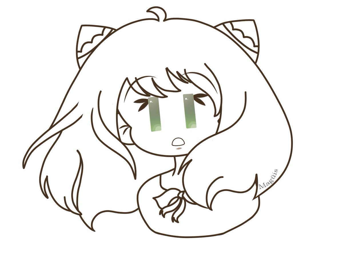 From #sketch to #lineart I wasn't too sure which looked better (the white bg or the grey/black bg)🤔 #MediBang #doodle #SPY_FAMILY #digitalartwork