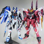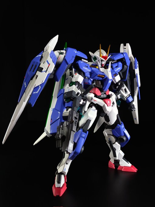 MG ダブルオーライザー 完成! 表面処理からディテールアップまで、今できるベストを尽くしました✨ 膝だけセブンソード仕様なのがコダワリ。 #ガンプラの画像貼るとRTされると聞いて #ガンダムOO