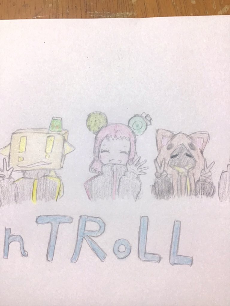 全員描いた!じらいちゃんあんま描かないんだけど、予想より可愛く描けた気がする💕かるてっちーの色が見にくいのは許して ⚠︎じらいちゃんといちはちくんの順が違う(かるてっちーと隣の方が良いかな〜って思って変えました。でも数学は正規版) #bintroll #bintrollFA