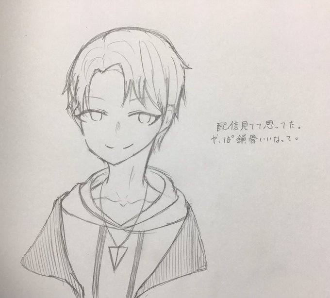 配信見ながら「....スゥーーやっぱ鎖骨良いな」って思いました。 気付いたら描いてました。鎖骨もいいけどこの髪型!良きよね。 #金剛力也像 #剣持刀也生