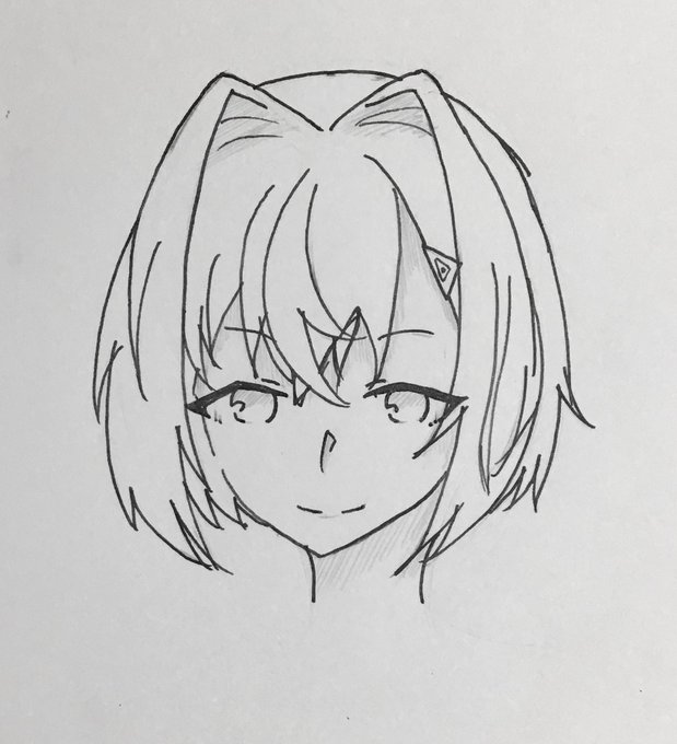 ンジュ初描き 髪型が難しくてちょっと変えてしまいました。 あと乾いてないのに消しゴムで消し消ししてしまった(´・ω・`) #絵ンジュ