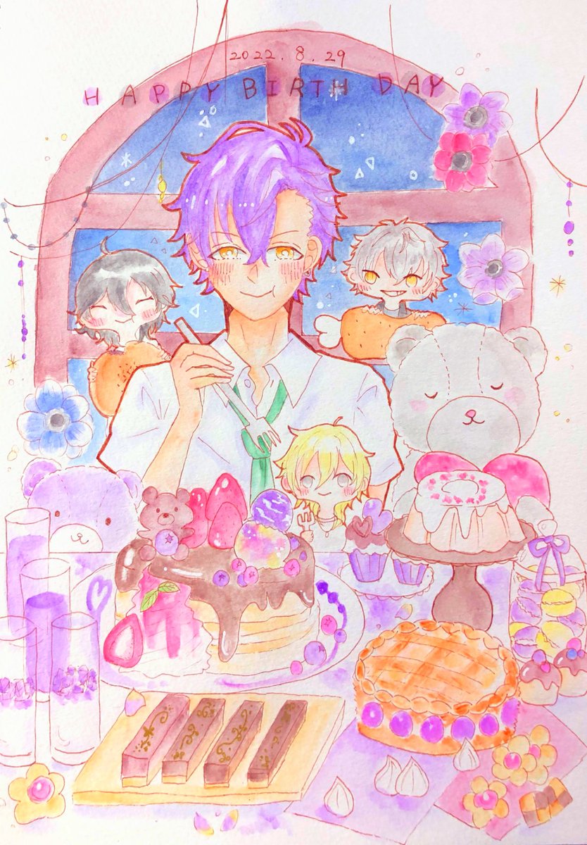 アドニスくんおめでとう🐻🍖✨ いっぱい食べる君が好きだ!!!これからも素敵な姿がたくさん見れますようにずっと応援させて頂きます🤘🏻💜 #乙狩アドニス誕生祭2022 #乙狩アドニス生誕祭2022