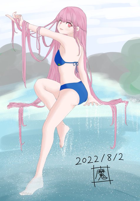 夏ビキニ(2022) ガーティックフォンコラボでお題に出して頂いたビキニ衣装をしっかり描いてみました♪ 髪の毛はParyiさんの髪の描き方本を見様見真似で💦 ミスって本番ファイルの解像度をめちゃ低くしてしまったのでこれはここまでにします… pixiv.net/artworks/10018… #どんだけ自分が好きなんや