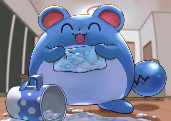 祝・マリルのぞうきん発売‼️ さっそく使う時が来たマリル🧼 #ポケモンイラスト #pokemon
