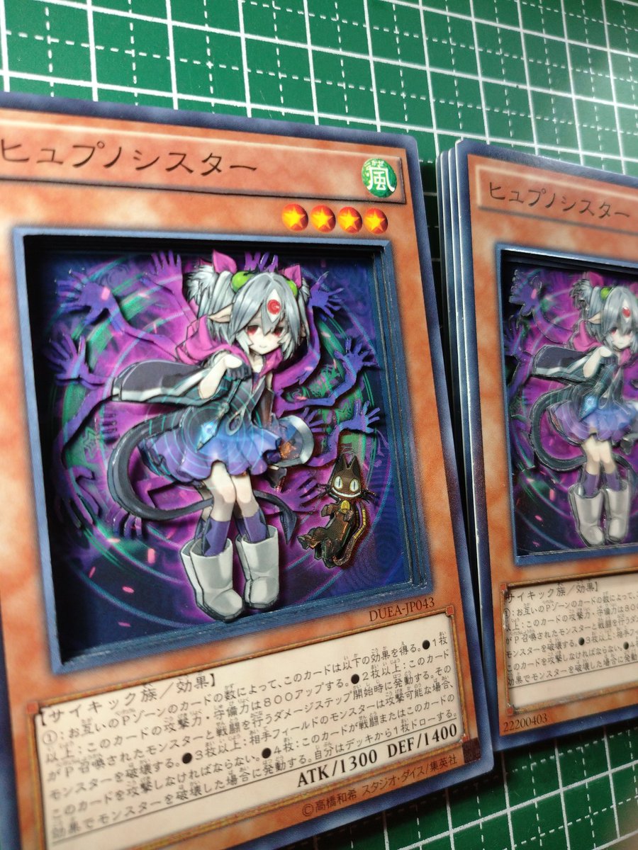 初めての作品であるヒュプノシスターをリメイクしました。 並べてみると、やっぱり過去作は粗さが目立つ… この子をメインにしたデッキレシピ誰かください #シャドーボックス #遊戯王