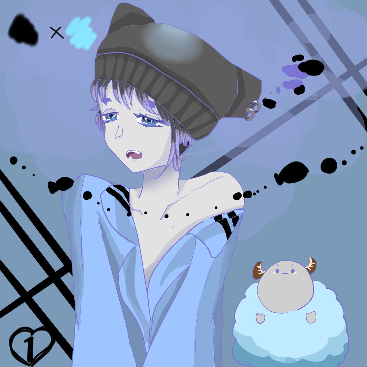 単独企画一日目𓆛𓆜𓆝𓆞𓆟 黒×水色です💎 あと6日✐☡ ⋆* #イラスト好きさんと繋がりたい #イラスト企画