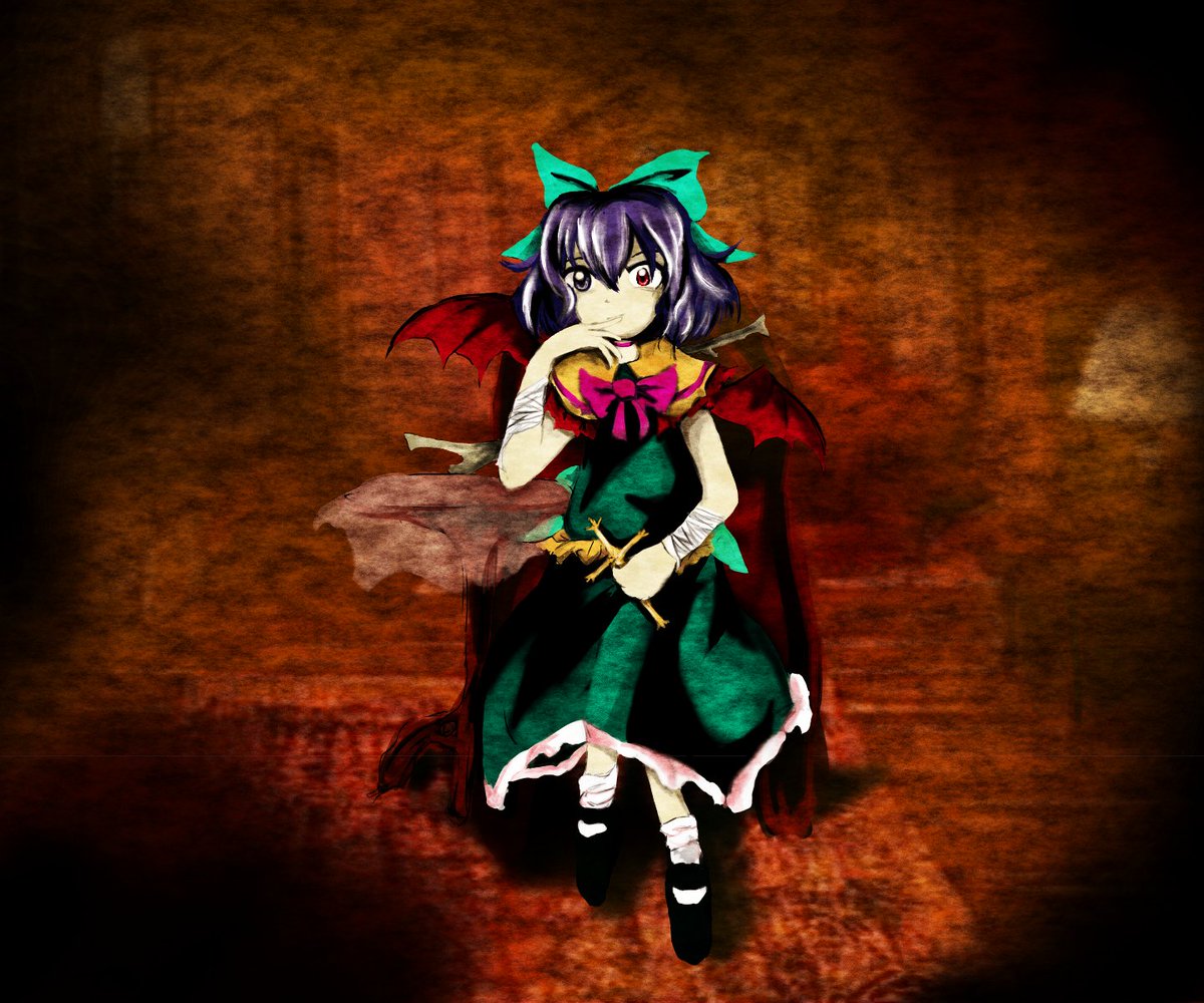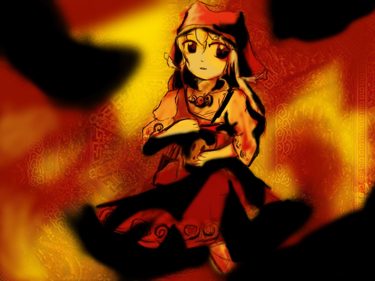 東方紅魔郷のルーミアのZUN絵 ドット絵を参考にトレスして全身絵を再現しました ドット絵だと赤い靴履いているけど紅魔郷の立ち絵見る限り、靴履いているキャラが居ないので、靴なし差分も描きました #東方project #東方紅魔郷 #ルーミア #ZUN絵